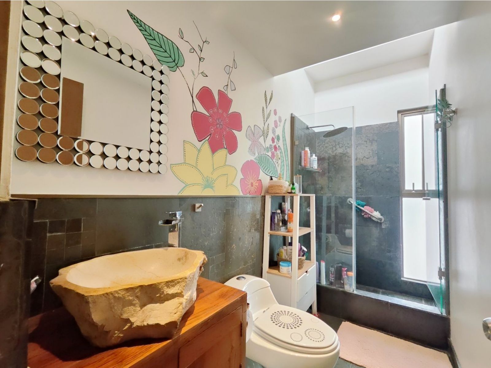 Hermosos jardines con espacios independientes, rodeado de árboles nativos. Riego automático, senderos iluminados. Piscina con Jacuzzi. Tinaja exterior.