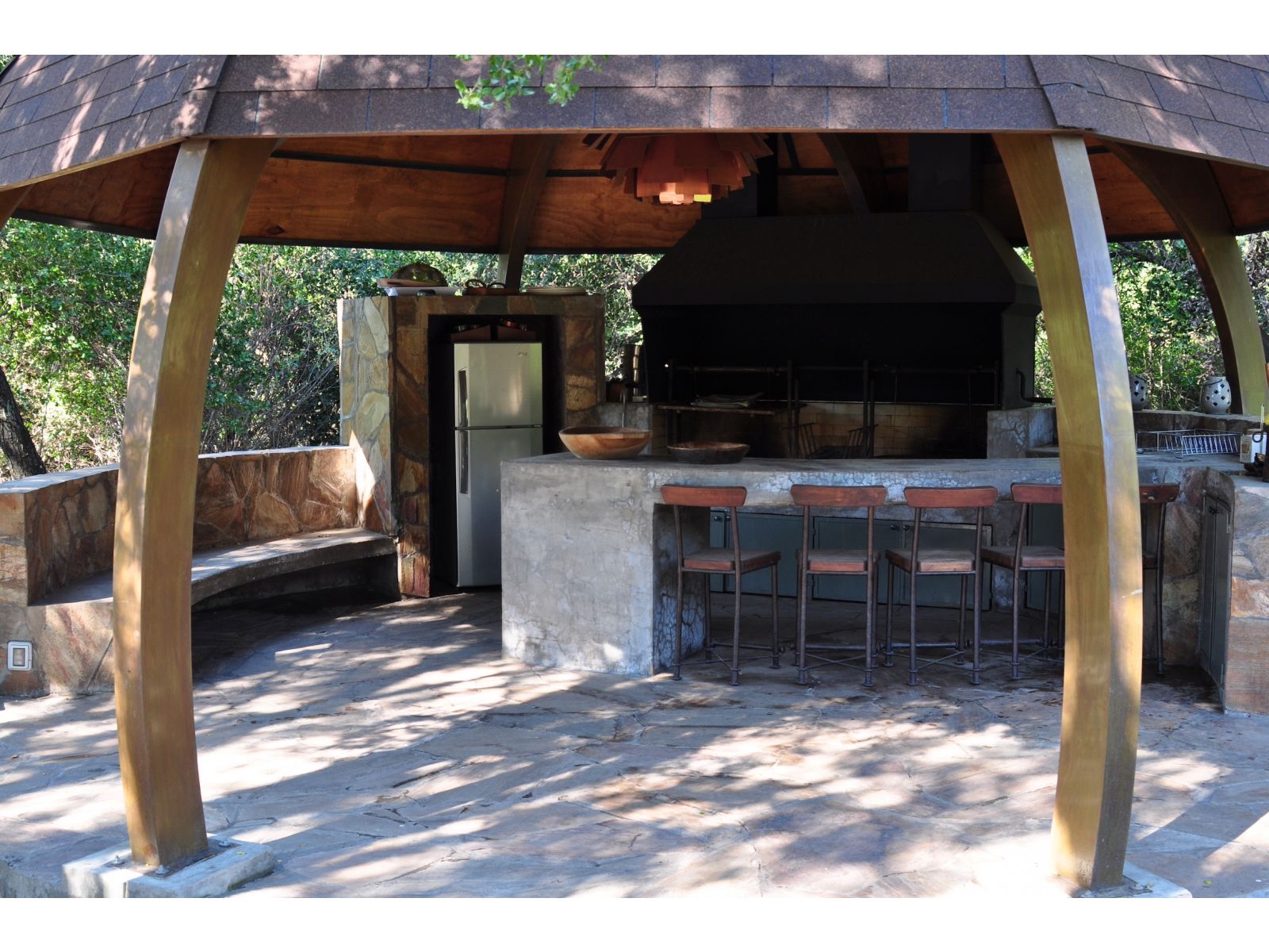 Inserta en un bosque de árboles nativos. Con una extensión de 13.819 m2 de terreno, donde se distribuyen de una manera armónica y con hermosos senderos, quinchos, piscina con jacuzzi, terraza y estacionamiento techado, casita de invitados independiente, lavandería, baños exterior , caniles, tinaja al exterior, fogatas, árboles frutales, entre otros.