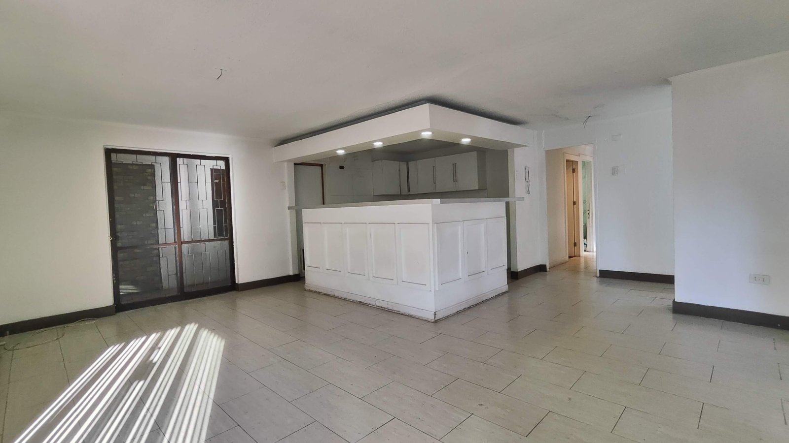 Cocina concepto abierto, living comedor separados.